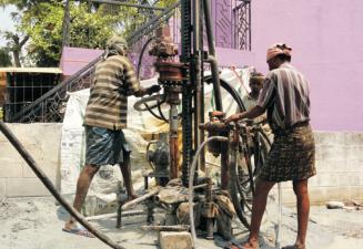 A ring well is constructed by excavating a shaft, generally manually and installing a casing where needed.